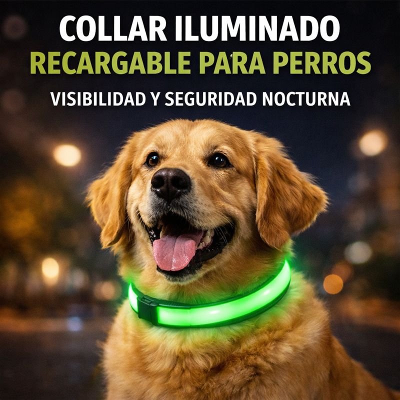 Collar Iluminado Recargable para Perros – Visibilidad Máxima en Caminatas Nocturnas